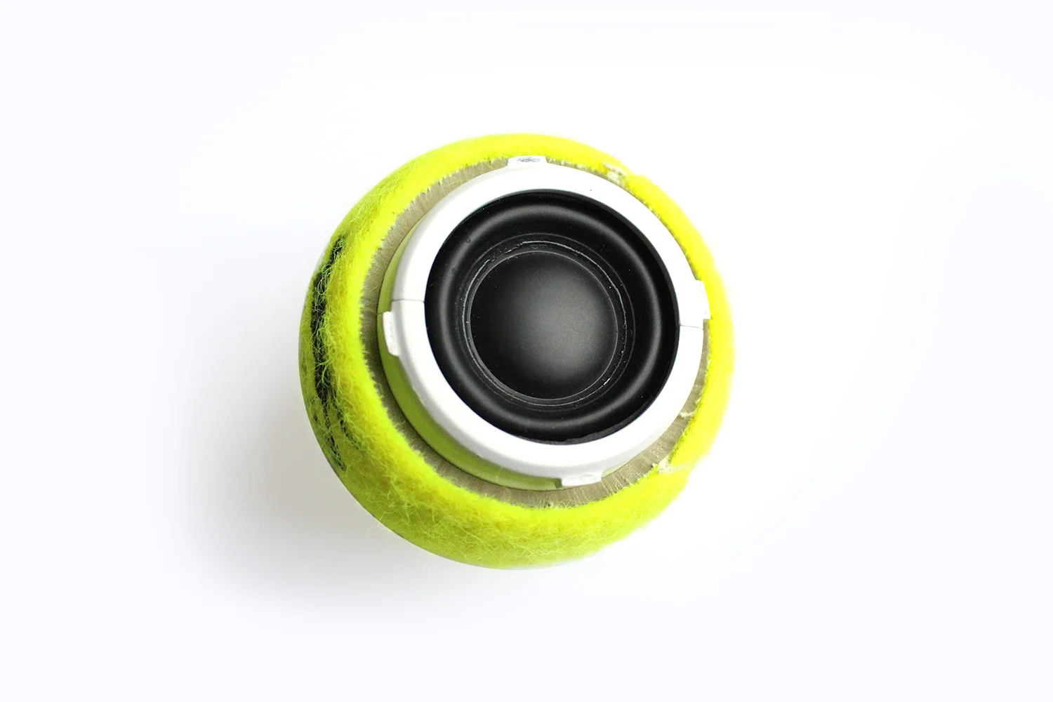 We began exploring the potential for making portable speakers. To create a powerful speaker within a tennis ball, we would need to work with teams of specialists across multiple disciplines.